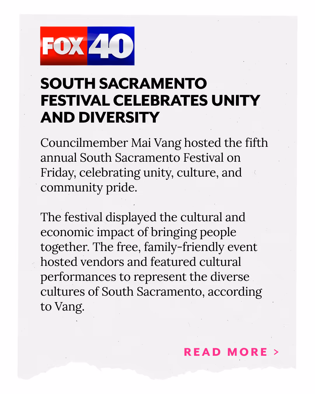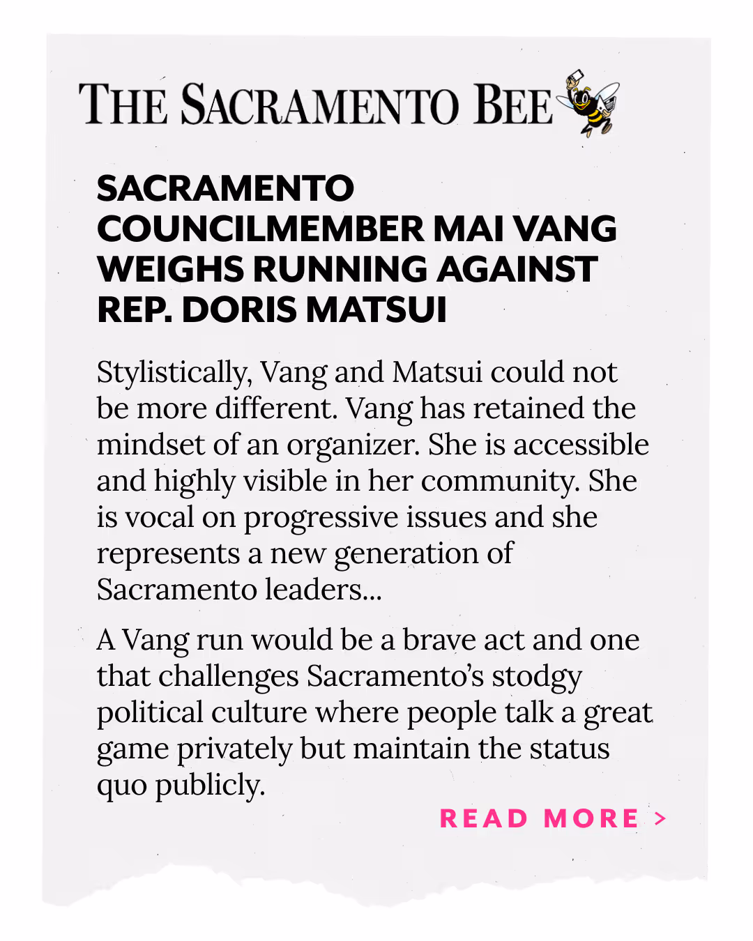Albert Balingit, Community Advocate & South Land Park Resident - Alejandro Cabrera, Community Advocate & Sacramento Resident - Alice Montes-Christopher, President, Feminist Democrats of Sacramento - Andres Ramos, Chair, Democratic Party of Sacramento County - Anh Luu, Small Business Owner of Cafe La Vies - Barbara Falcon, Community Advocate & South Sacramento Resident - Barbara Ramm, Community Leader, East Sacramento - Caroline Thao, Teacher, Grant High School & Sacramento Resident - Cha Vang, Community Advocate & Elk Grove Resident - Charlie Vang, Hmong Elder & Community Advocate - Chris Chaffee, Oak Park Resident - Clarissa Laguardia, Executive Director of Cal Center for Civic Participation - Daniel Savala, Small Business Owner of Cervezalandia - Dr. Cindy Vang, Assistant Professor, California State University, Chico - Dr. Hiba Hamdan MD/MPH, Community Advocate & Faculty, University of California, Davis - Dr. Rhonda Rios Kravitz, Community Activist & Sacramento Resident - Dr. Wendi Yamashita, Assistant Professor, California State University, Sacramento - Edson Perez Rojas, Founder of Latinx Young Democrats & Sacramento Resident - Elizabeth Muñoz, Founder of Grupo Folklorico Los Saguaritos - Elizabeth Villanueva, Educator, Sacramento Resident - Ellen Cochrane, Former School Boardmember & East Sac Resident - Eric Sunderland Former Region 3 Director for the California Democratic Party - Estella Drake, Community Advocate & Elk Grove Resident - Flojaune Cofer, Former Mayoral Candidate Sacramento - GaNeane Lewis, Commissioner, Community Police Review Commission - Grace Longmire, Vice Chair, Saramento Youth Commission - Isaac Gonzalez, Founder of Slow Down Sacramento & Sacramento Resident - Jackie Rose Founder of Rose Family Creative Empowerment Center - Jacquie Duerr, Community Advocate & South Land Park Resident - Jason Davis, Business Owner of Island Fin Poke - Jean Crowder, Mai's High School Teacher - Jeanine Gains, Chair, Parks and Community Enrichment Commission - Jim Peterson, Principal, Luther Burbank High School - Jonathan Tran, Community Advocate & Green Haven Pocket Resident - Jose “Junior” Goris, President of the Delta Shores Community Association - Juan Novello, Vice President, Sacramento Hispanic Chamber of Commerce - Julie Spezia, Community Advocate & Sacramento Mid-Town Resident - Kai Herman, Former President of Land Park Pacific Little League - Kao Ye Thao, Director of Policy and Partnerships, Hmong Innovating Politics - Katie Valenzuela, Former City Councilmember, Sacramento - Kenneth Carson, Community Advocate & Elk Grove Resident - Kim Stephans, Founder of the Stephans Foundation - Lanz Nalagan, Community Advocate & Midtown Resident - Larry Ferlazzo, Retired Teacher, Luther Burbank High School - Lashunda Cormier, Business Owner of Louisiana Heaven - Laura Vu, Community Advocate - Leesai Yang, Community Advocate & Sacramento Resident - Leia Schenk, Founder of EMPACT & Sacramento Resident - Luisa Lavulo, Chair, Sacramento Arts, Culture, and Creative Economy Commission - Lynette Hall, Community Engagement Manager, City of Sacramento - Manuel Buenrostro, Community Advocate - Margarita Chavez, Co-President, Detroit Community Neighborhood Assn - Mary Kimball, Executive Director, Center for Land-Based Learning - Matthew Bryant, Community Advocate & South Sacramento Resident - Megan Saipigao, Community Advocate & Elk Grove Resident - Monica Ruelas Mares, Chair, Sacramento Children's Fund Planning and Oversight Commission - Nailah Pope-Harden, Community Advocate & South Sacramento Resident - Nancy Xiong, Executive Director, Hmong Innovating Poltiics - Nkauj Iab Yang, Community Advocate & North Sacramento Resident - Pachia Vang, Textile Artist & Educator - Paolo Soriano, Community Advocate & Cosumnes River College Faculty - Paula Villescaz, Former San Juan School Board Member - Rebekah Turnbaugh, Community Advocate - Richard Falcon, Community Activist & South Sacramento Resident - Shonna McDaniels, Artist & Community Advocate - Shoun Thao, Former City Councilmember & Sacramento Resident - Stephanie Yang, Community Advocate & Tallac Village Resident - Sue Vang, Community Advocate & Sacramento Resident - Suki Majaraj, Teacher, Rosa Parks K-8 School - Tamie Dramer, Former Executive Board Member for the California Democratic Party - Tecoy Porter, Senior Pastor, Genesis Church Sacramento & Elk Grove Resident - Terra Lopez, Music Artist & Community Advocate - Thai Tao, Hmong Elder & Community Advocate - Theresa Riviera, Community Advocate & Sacramento Resident - Tina Reynolds, Founder of Uptown Studies & Mid-Town Resident - Todd McPherson, Teacher, Luther Burbank High School - Tong Thao, Active Transporation Commissioner, City of Sacramento - Valene Byrd, Founder of ART-TISM - Xai Lee, Sacramento Managing Director of EBAYC-Sacramento - Yumi Sera, Community Advocate & Elk Grove Resident