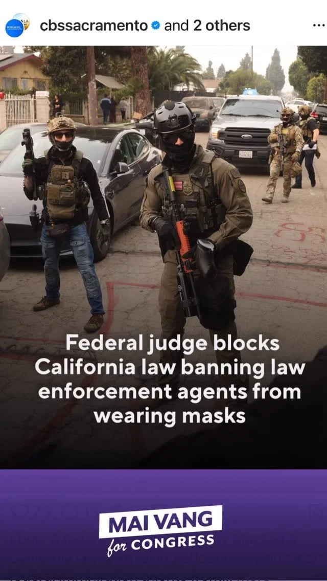 Mai will fight to free our neighborhoods from the terror of masked ICE agents and militarized law enforcement. She will work to fix our broken immigration system and protect our freedoms.
